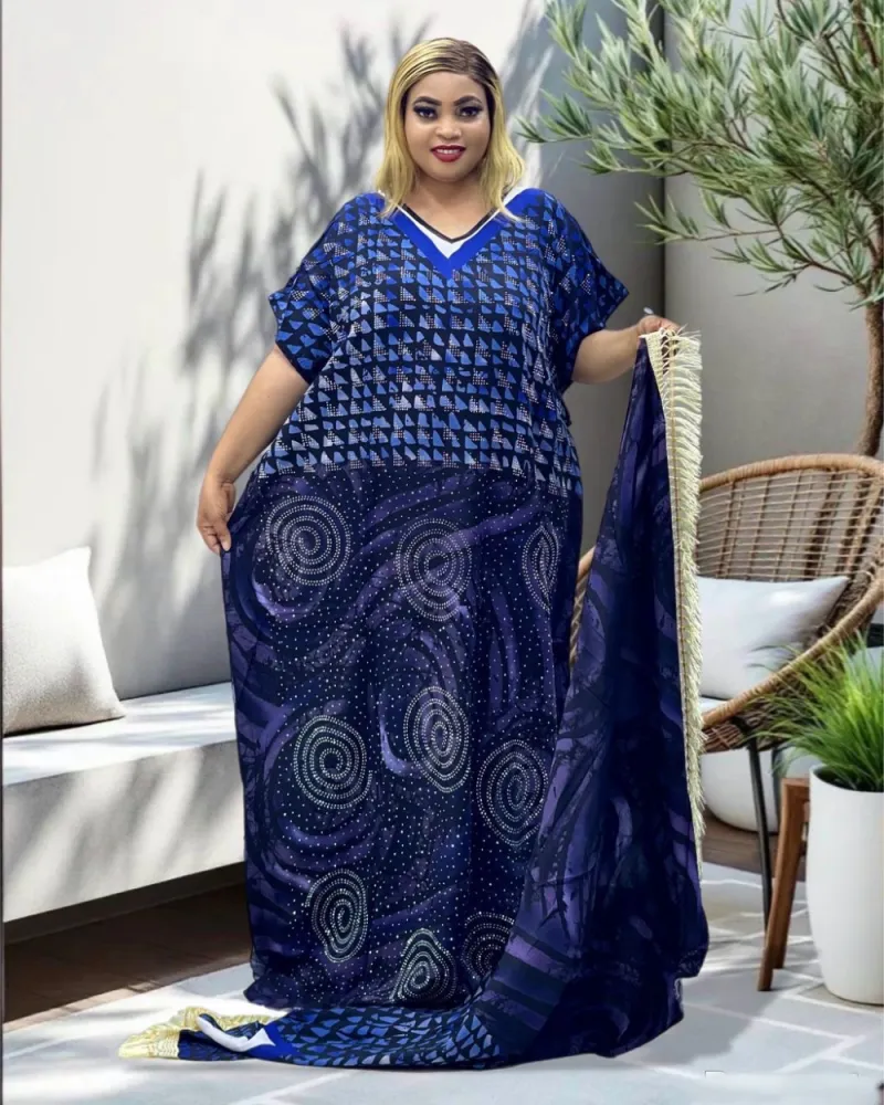 Robe brilliant grand voile cotton bleu