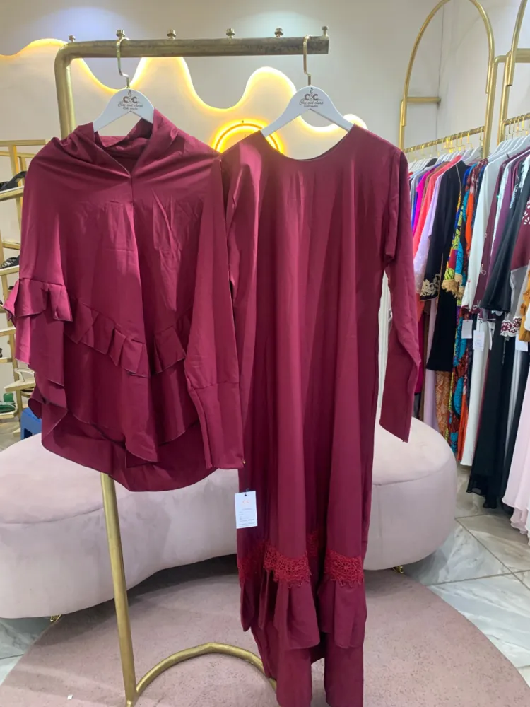 ENSEMBLE DJILBAB DE PRIÈRE 2 PIÈCES COULEUR ROUGE BORDEAU